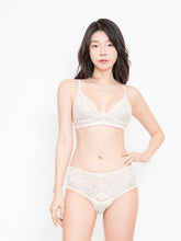 Isabella elevates "white" to new dimensions of elegance. The white base mesh is delicately woven with pink and blue threads, creating depth and dimension like soft morning light filtering through mist. The deep V triangle cups provide lightweight support while maintaining a fresh, clean outline that's immediately recognizable for its proportion and quality.